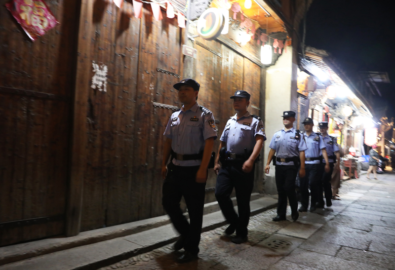 明清古街巡邏。胡昌清攝