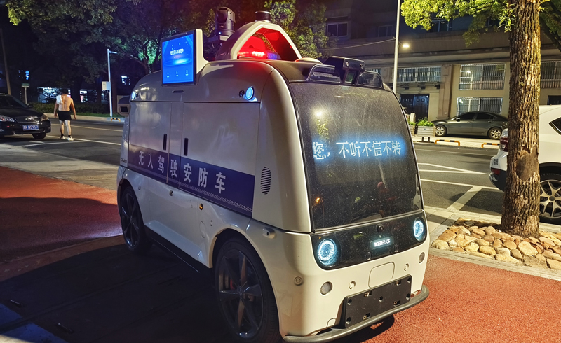 無人駕駛安防車開展巡邏。胡昌清攝