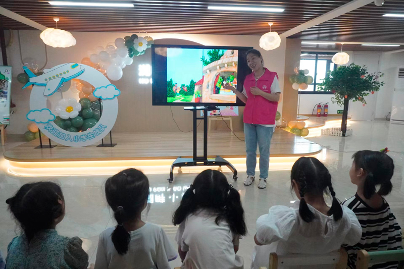 8月26日,在浙江省溫嶺市城西街道湖畔社區的繪本館里,一場別開生面的親子閱讀活動正在舉行。幼兒教育志愿服務者莊瓊正繪聲繪色講述《小魔怪要上學》故事。
