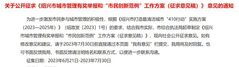 有回音丨網友建議開通“城市治理有獎舉報”平臺 紹興:已制定方案并公開征求意見