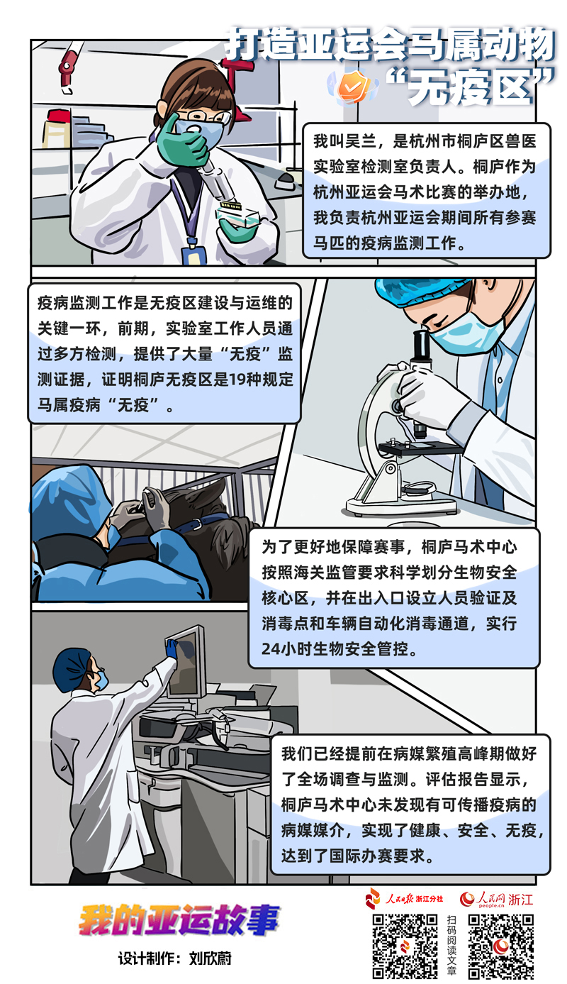 馬術是亞運項目中唯一一項人與動物同場競技的賽事,保障亞運期間參賽馬匹健康、順利完成比賽并安全返回至關重要。桐廬為實現區域內生物安全“無疫”,建成了國內第二個“無規定馬屬動物疫病區”。2020年7月,桐廬縣農業農村局公開招聘6名無規定馬屬動物疫病區管理中心工作人員,吳蘭便是其中一人。
