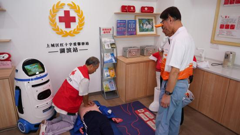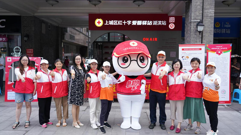 心肺復蘇、創傷包扎、海姆立克法……9月4日上午,在位于湖濱步行街的城市亞運志愿服務站點紅十字愛馨驛站,“急救俠”吉祥物精彩亮相,與亞運志愿者一起生動展現應急救護普及、心肺復蘇、AED使用等急救技能教學體驗,同時還對造血干細胞捐獻進行了宣傳,把應急救護的相關知識和技能傳授給參與活動的群眾。
