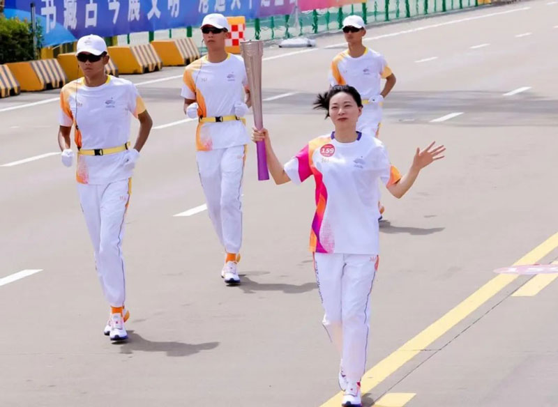 黃文娟參與亞運火炬傳遞。寧波市鄞州區人民法院供圖