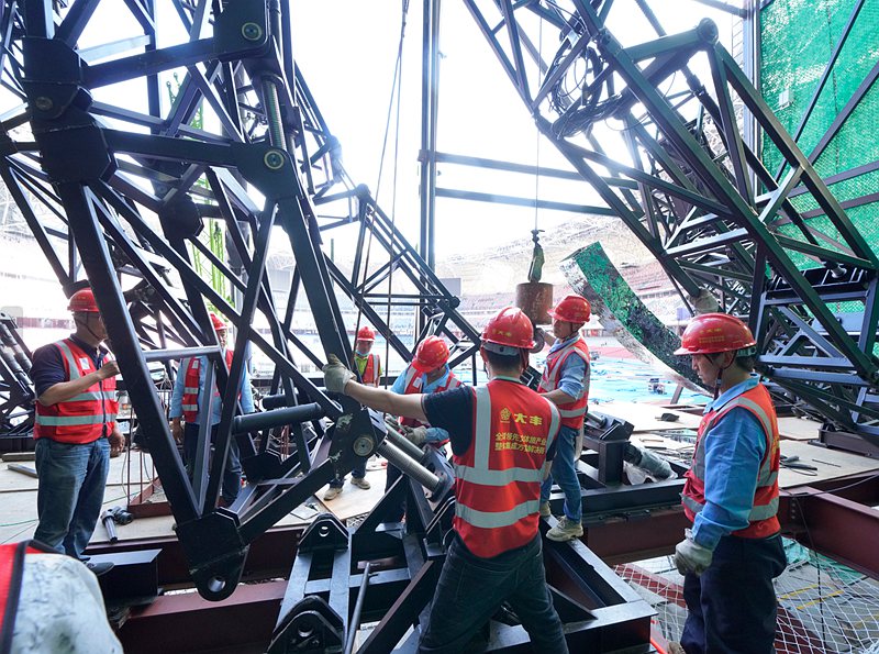 “開幕式現場從各個角度看過去,火炬柱需要保持弧形狀態,但鋼結構材料很難實現這一點。因此,我們最終采用了機械骨骼系統和裝飾系統分離兩套系統,并將裝飾結構改成動態浮動結構。一是為了保證連續運動中優美、連貫的動態視覺效果,二是為了降低基建難度,提升可靠性?!眹廊A鋒說。