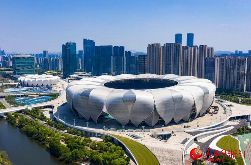 杭州亞運會首次實現全部場館綠電供應。圖為“大小蓮花”場館。人民網 章勇濤攝