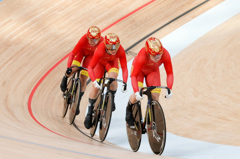 杭州亞運會場地自行車女子團體競速賽決賽現場。杭州亞組委供圖