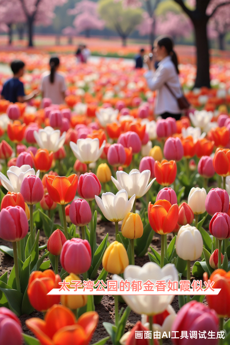 溫州瑞安的油菜花漫山金黃,風起時花浪翻涌,沁人心脾。杭州太子灣公園的郁金香如霞似火,織就一片絢麗花海。