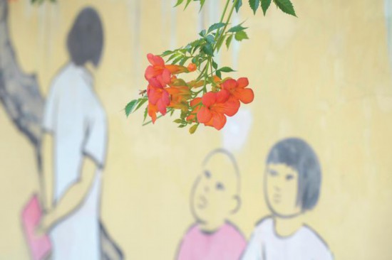 7月10日,在嘉興市區恬園路上,綻放的凌霄花自墻頭傾瀉而下,橙紅色的花朵在風中搖曳生姿,與墻繪構成一道浪漫的風景線,扮靚了夏天。(俞中岳)